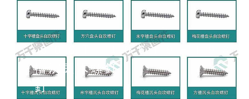 木螺釘有十字槽沉頭、十字槽半沉頭、十字槽圓頭、開槽(一字槽)沉頭、開槽半沉頭、開槽圓頭、六角頭等幾種,公稱直徑有1.6、2、2.5、3、3.5、4、5、6、7、8、10等系列,長度有6、8、10、12、16、20、25、3