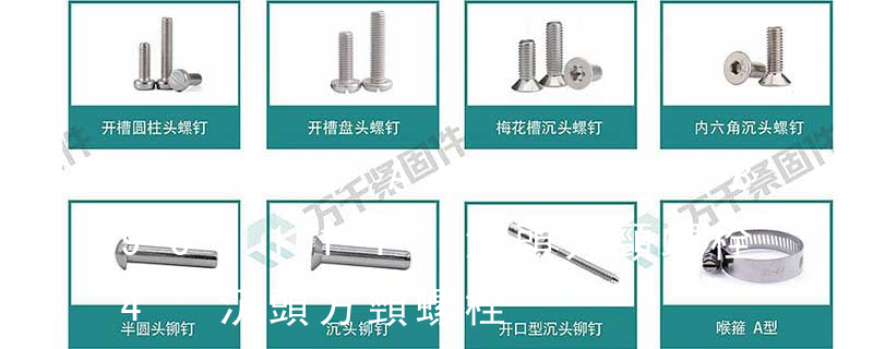 Square head bolt方頭螺栓Flat countersink square neck bolts 沉頭方頸螺栓Flat counter sunk nib bolts沉頭帶榫螺栓Cross recessed pan head tapping screws 十字槽盤頭自攻螺釘(如果在圖紙上看到標注# 2或# 20等,是指該螺絲的頭部