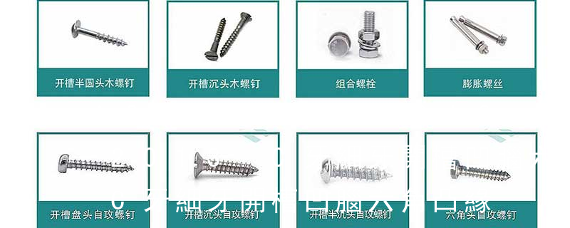 1.螺絲釘按照名稱可分為 機螺釘、自攻螺釘、鉆尾螺釘、墻板釘、纖維板釘、木螺釘、六角木螺釘、不脫出螺釘、組合螺釘、微型螺釘、家具螺釘、電子螺釘 2.按照頭型可分為 1)六角頭(hexagon head)2)六角頭法蘭面(hexagon 6、Hex:六角頭 A-5:Finish Code/外觀處理。公制自攻螺絲 :于品名后方直接標示 Tapping Type。Ex:M3 x 6 –PPB,Tapping Type:M3自攻螺絲,6mm 長,十字,圓扁頭,鍍黑。一般以產品別或標示,再判斷為Sheet Metal或